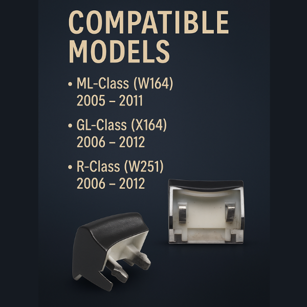 This Driver (Master) Window Switch Repair Button Cap Cover is designed as a direct replacement for worn or damaged switch caps in Mercedes-Benz ML-Class (W164), GL-Class (X164), and R-Class (W251) models. Manufactured from high-quality plastic, this pair of button caps ensures durability, a perfect fit, and seamless operation of your window control panel.